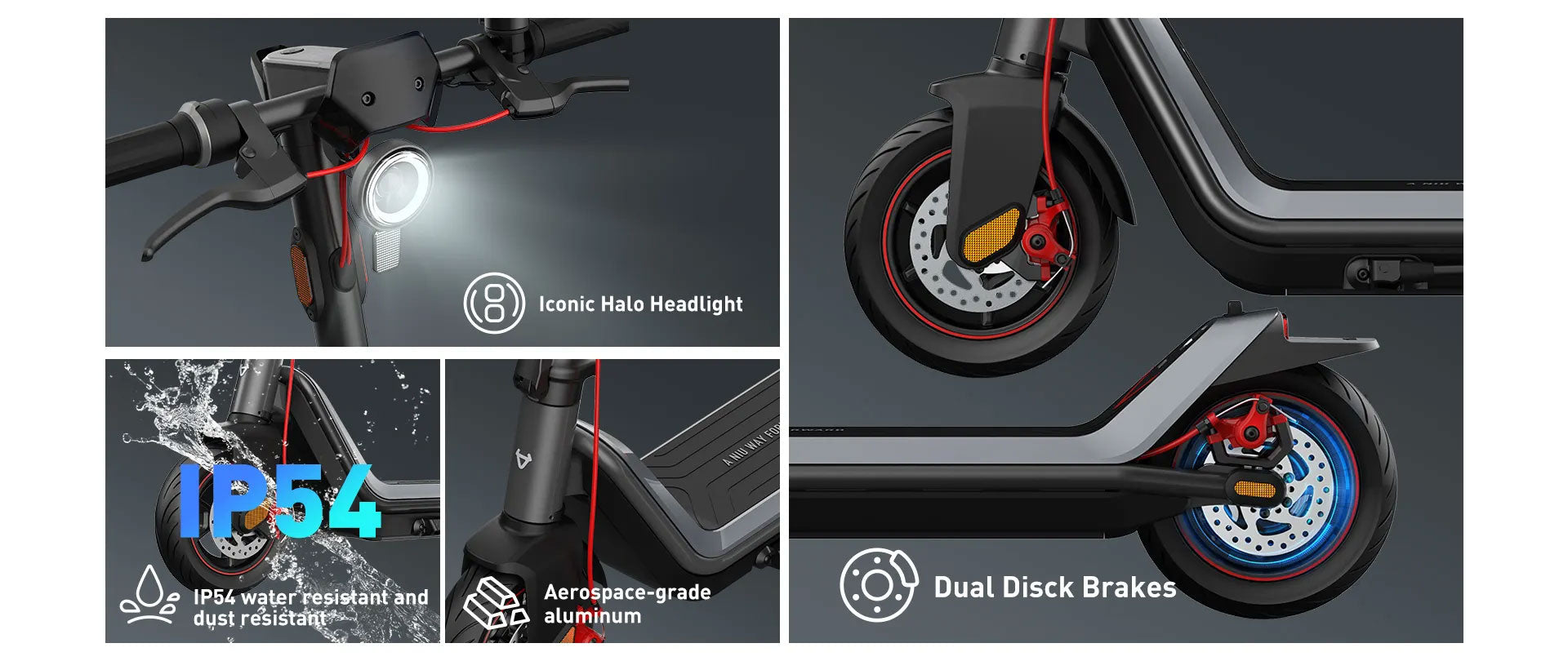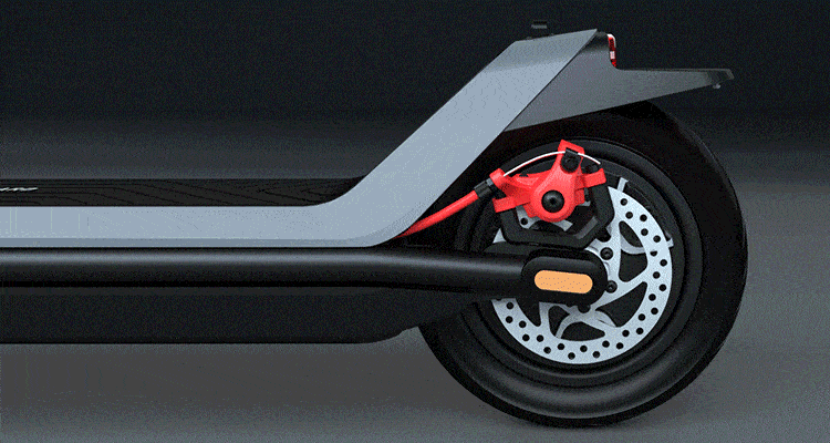 The KQi3 Max uses a patented Dual-action brake caliper made of die-cast aluminum alloy, providing extremely short braking distance with excellent heat dissipation. NIU's iconic red paint is added to make it "pop".