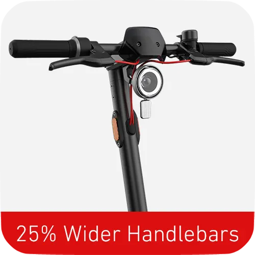 25% wider handlebars (540mm)13% wider deck (170mm)30% fatter wheels (2.5’’)